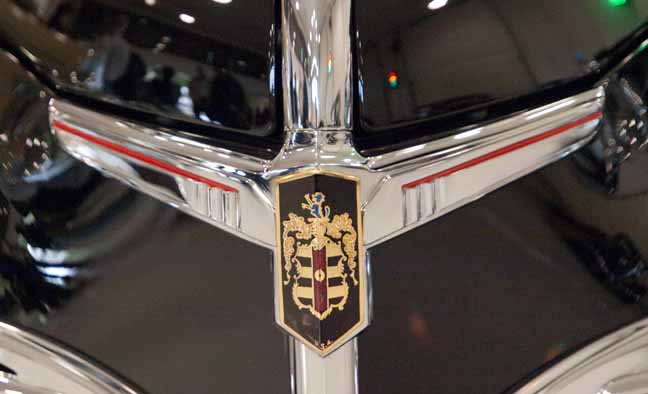 128. Dodge family coat-of-arms featured in winged crest decorating nose.